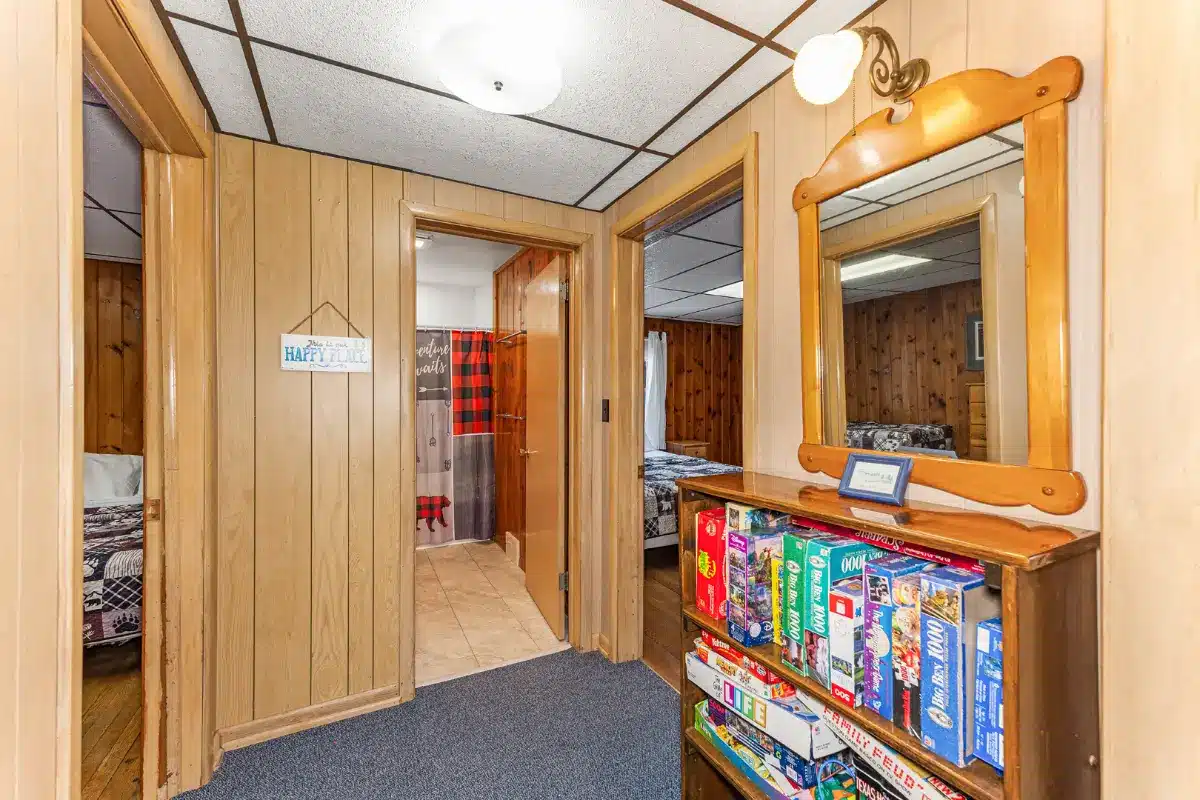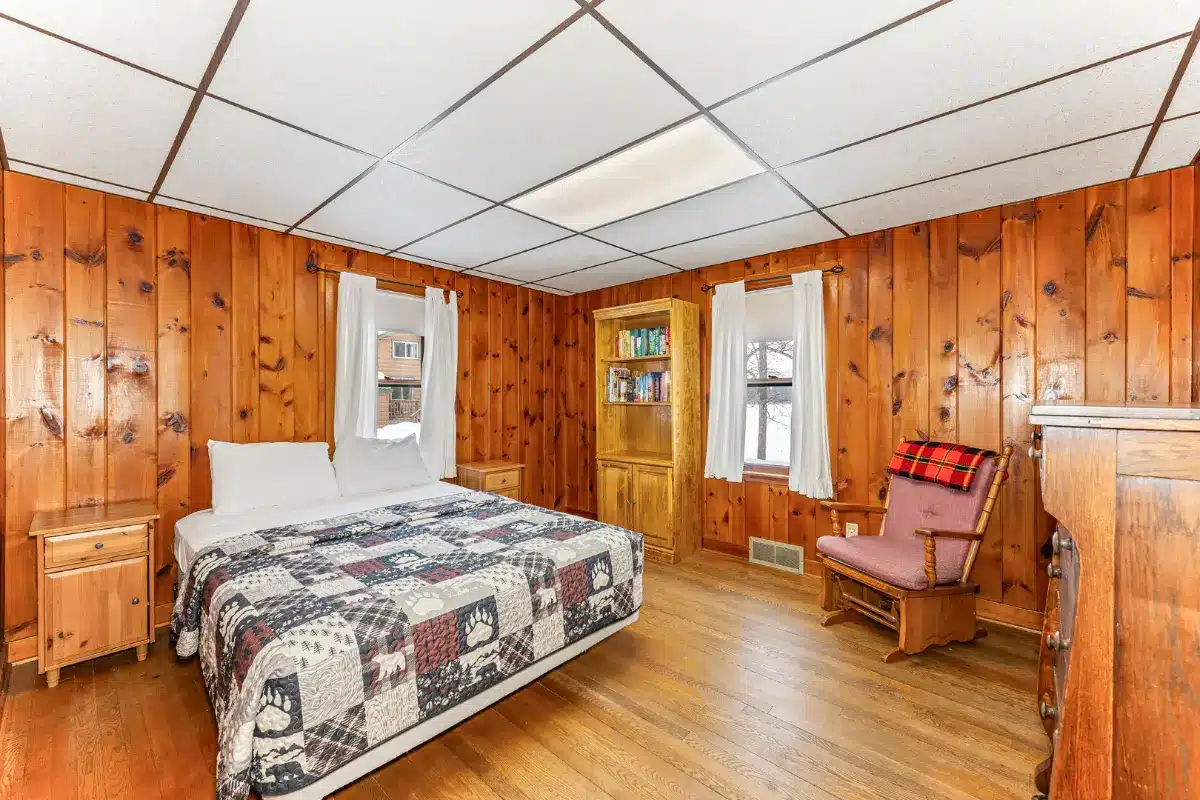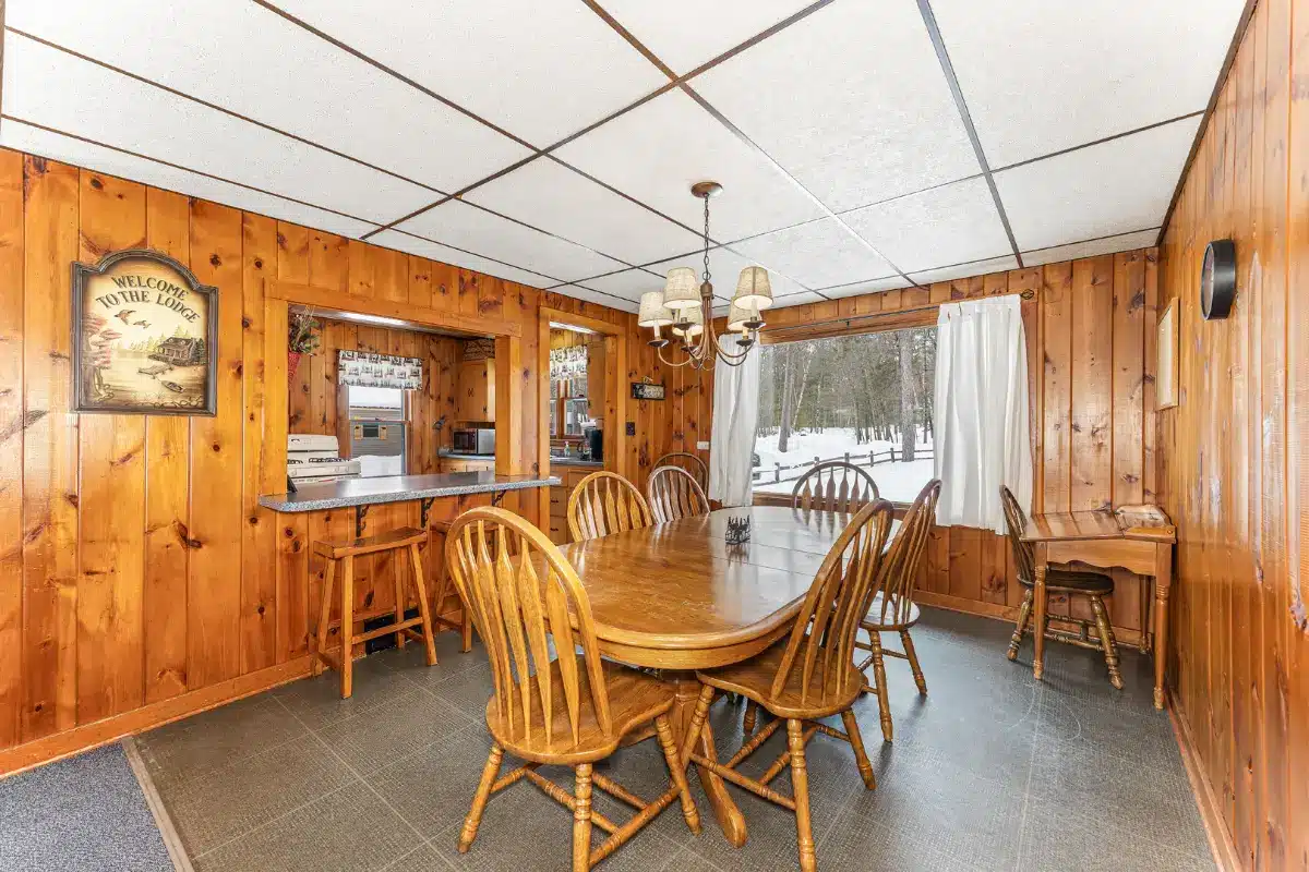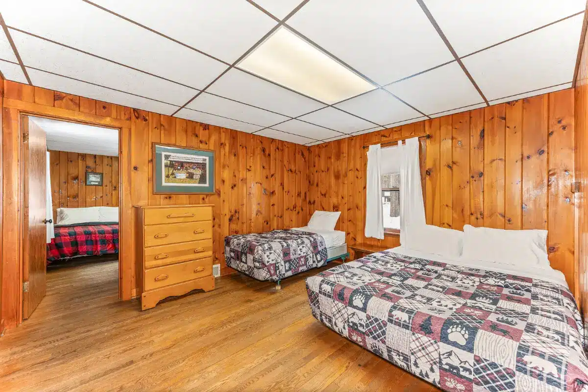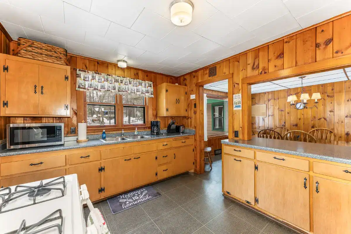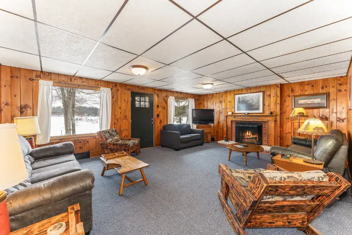 Enjoy your dream Northwoods vacation in this large 3-bedroom, 2-bath home right on the water! The inviting living room features a charming wood-burning fireplace, knotty pine interior, and panoramic lake views from two picture windows. With 4 queen beds and 1 twin, there’s plenty of space for families or friends.