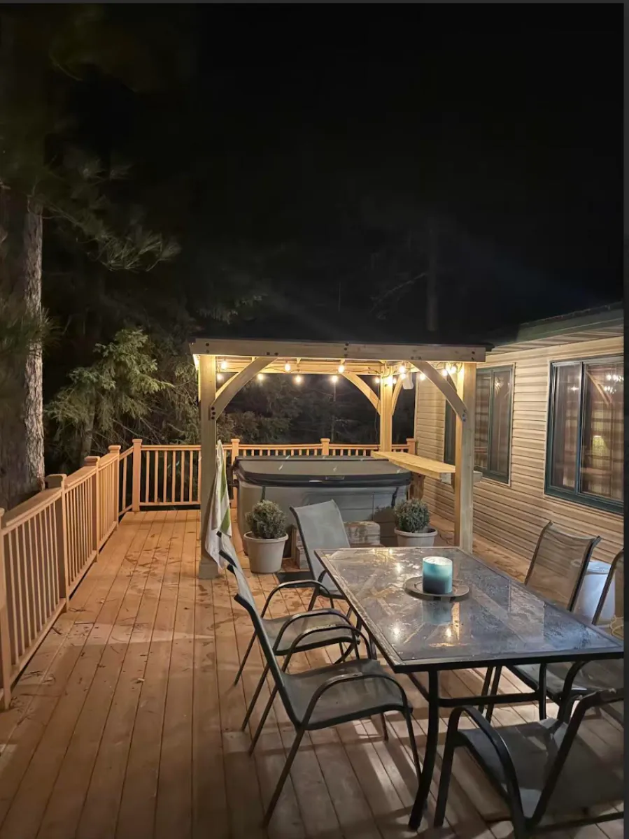 Take advantage of the private waterfront, featuring your own dock for boats or fishing and two complimentary kayaks for exploring the gentle river current. Unwind in the brand-new outdoor hot tub, or gather around to admire sunset views from the waterfront patio. Indoors, you’ll appreciate modern comforts such as central AC, a fully stocked kitchen, and an open-concept living space with plenty of natural light and river views.