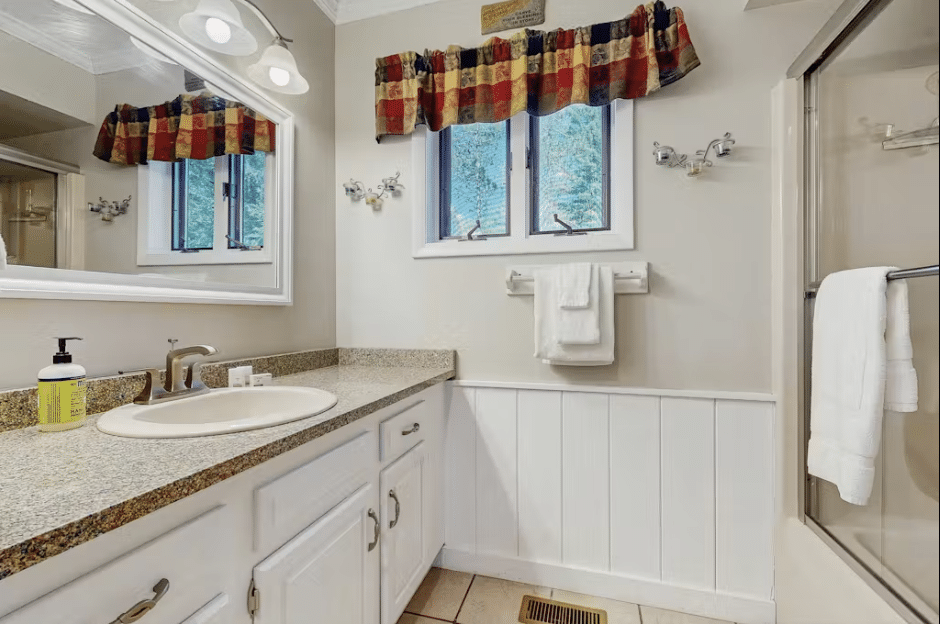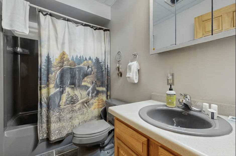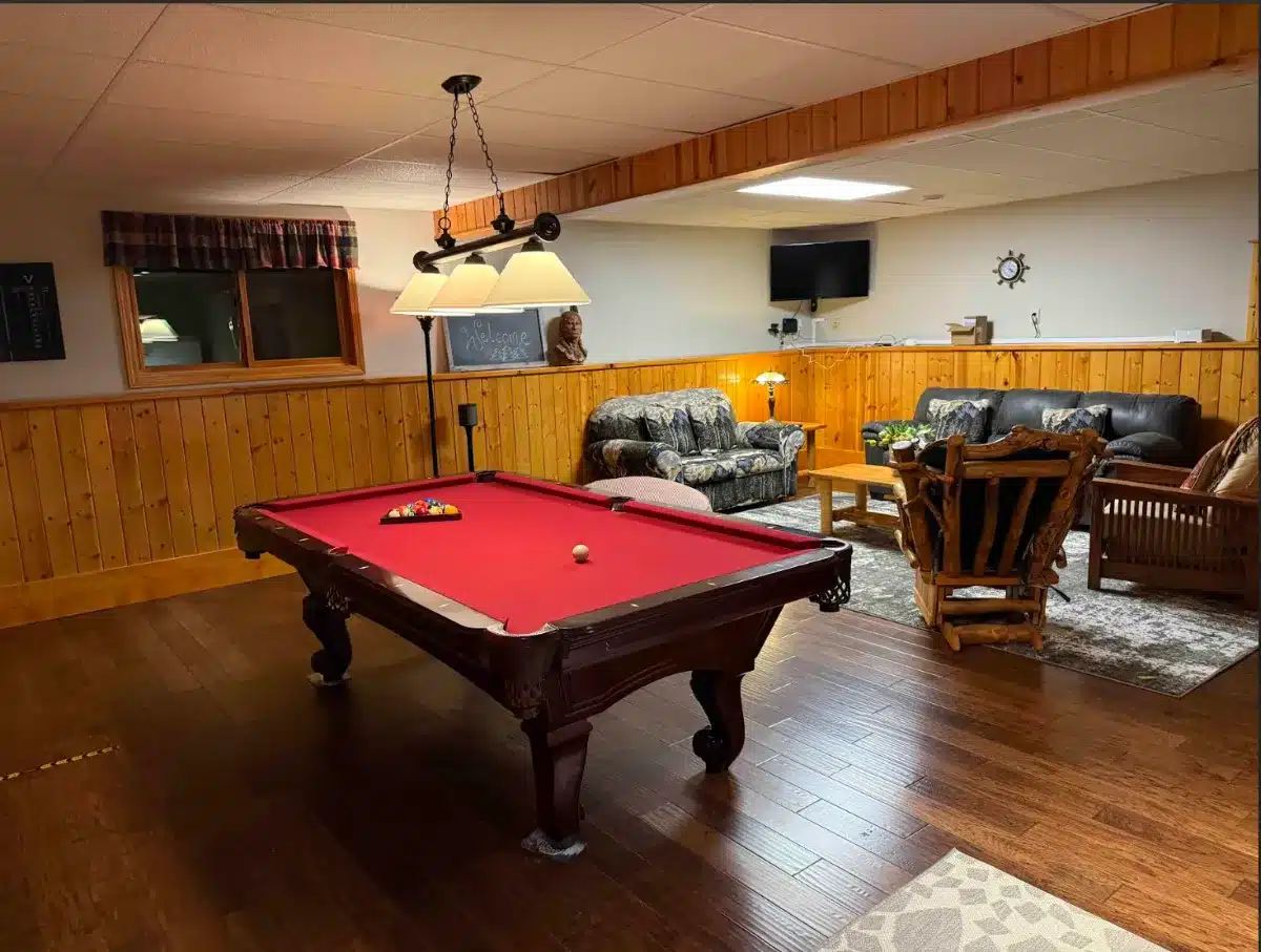 The home comfortably sleeps up to 10 guests, with four bedrooms designed for rest. The primary suite has a private bath, while two additional full bathrooms accommodate guests comfortably. For fun on rainy days or cozy evenings, there’s a game room featuring foosball, board games, and a smart TV—perfect for family movie night.