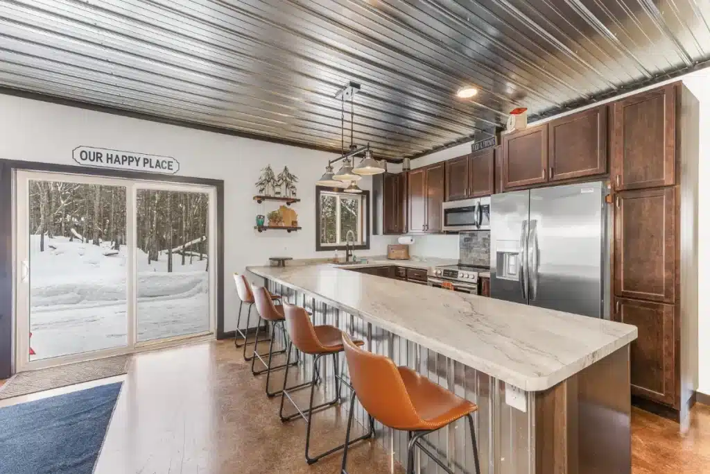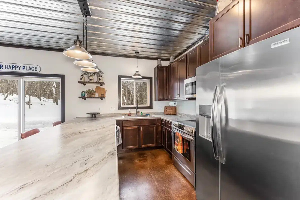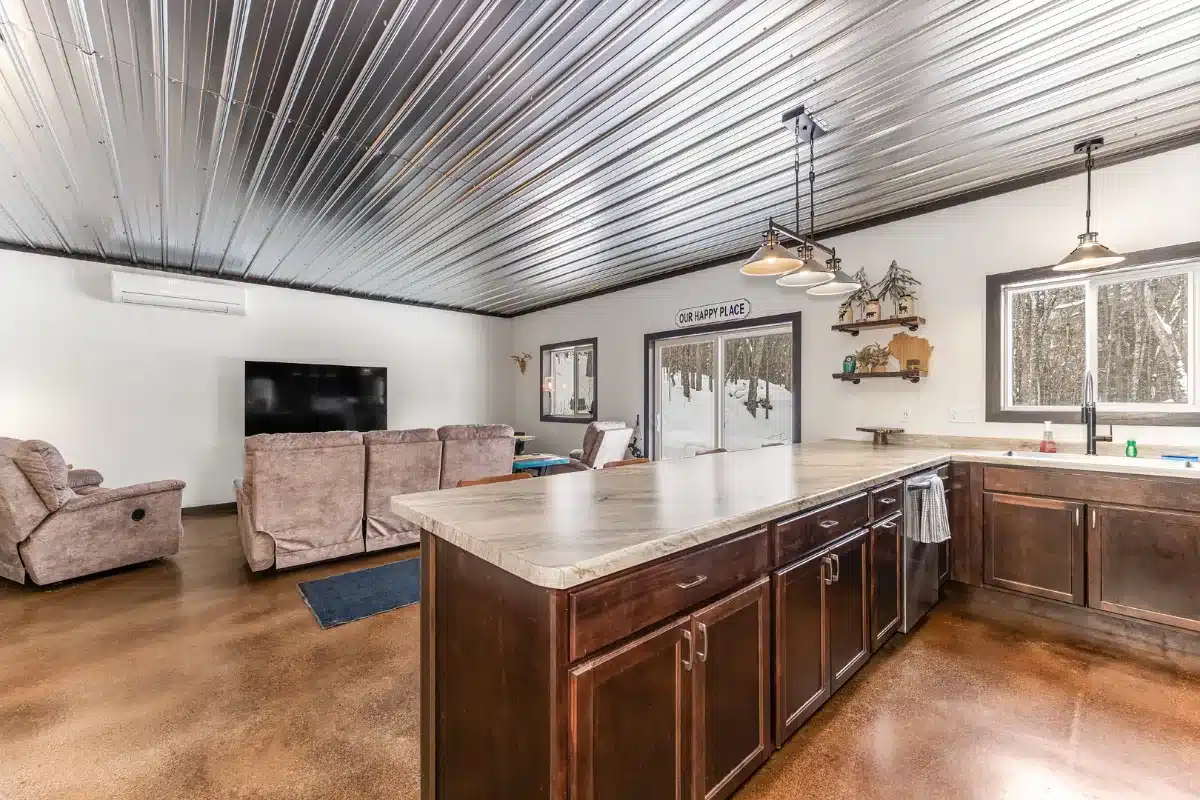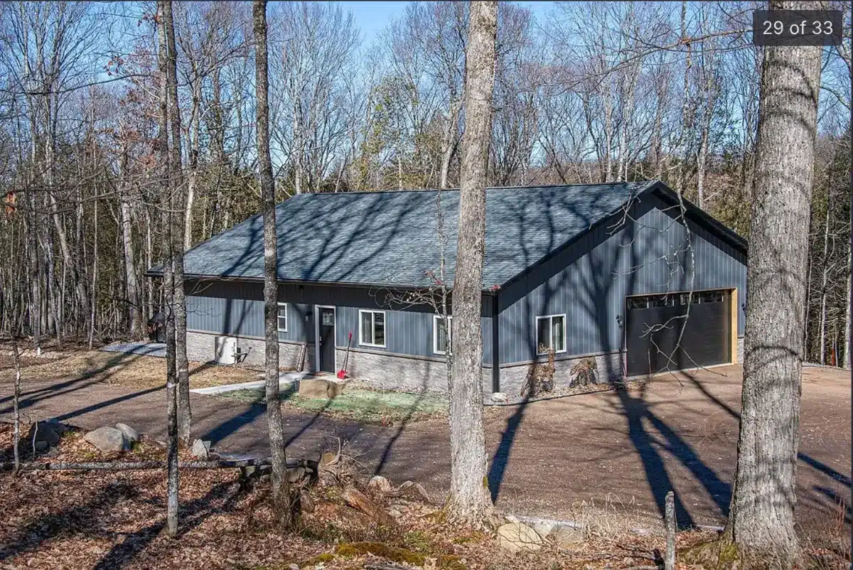 Relax and explore from this stylish, newly built retreat in Phelps, WI—just 200 yards from Lac Vieux Desert lake access. Enjoy open-concept living, in-floor heating, central air, and acid-etched concrete floors. The spacious living area opens onto a large patio, perfect for spotting wildlife or unwinding outdoors.